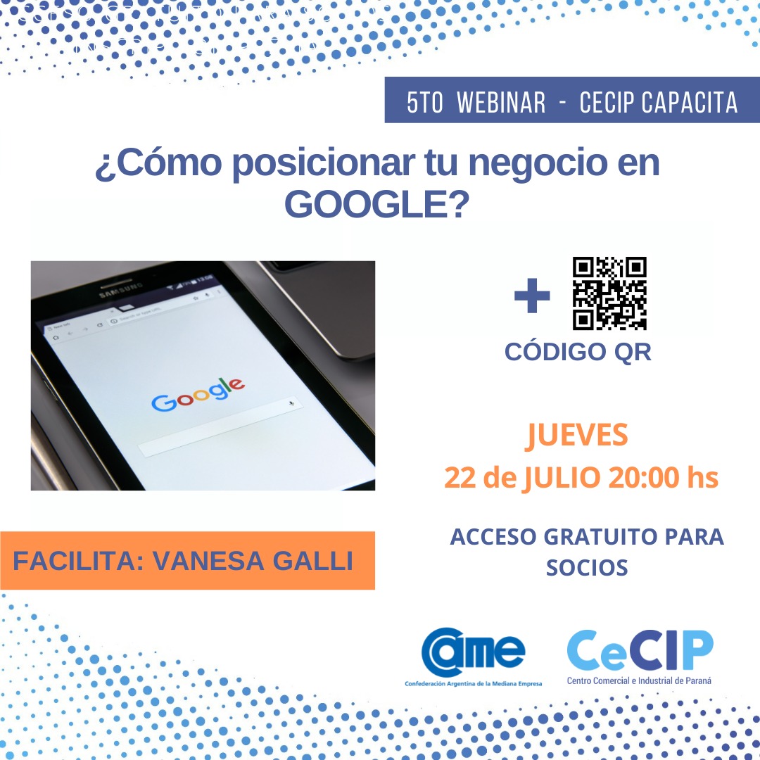 El próximo jueves 22 de julio a las 20:00hs, nos encontramos por zoom en este 5to webinar que organizamos desde el Cecip con el objetivo de fortalecer nuestras pymes.